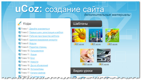 Спасибо, скачал и книгу и диск. Начал пользоваться Ucoz'ом и иногда нужны некоторые уточнения.smile