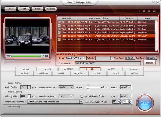 Fast DVD Ripper не только прекрасно делает рипы DVD фильмов, но также преобразует эти файлы в соответствии с Вашими мультимедийными устройствами. Простота использования и высокая скорость обработки, это мощное программное обеспечение преобразует DVD видео во все популярные видео форматы, такие как AVI, WMV, FLV, MP4, MPEG, iPod, iPhone, Apple TV, PSP, PDA, 3GP, Zune, Music, XviD, DivX, JPG, BMP. Программа поддерживает все коммерческие DVD и снимет все ограничения DVD (CSS, регион 1-6, Sony ARccOS и т.д.).