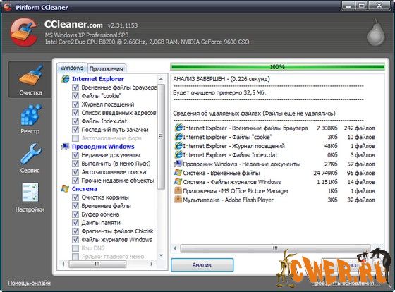 Скачать программу CCleaner 2.31 Build 1153 Portable(1,09 МБ):