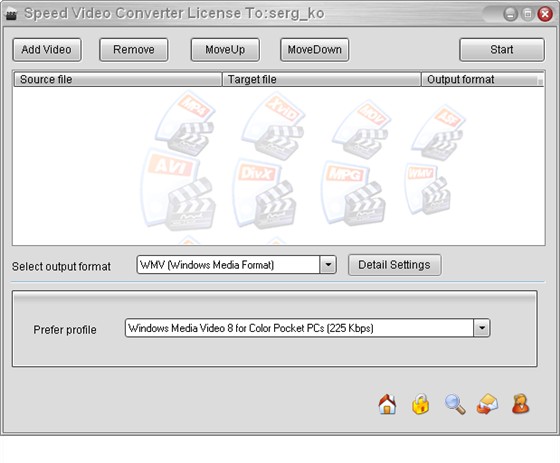 Speed Video Converter - маленький, высокоскоростной, с легким пользовательским интерфейсом, - это часто, самые сильные аргументы при выборе в пользу того или иного видеоконвертора. Необходимо лишь загрузить файл и установить желаемые выходные параметры и все, процесс пошел! Speed Video Converter поддерживает различные видео форматы, такие как: AVI (Divx,xDiv), MPEG-4, MPEG (VCD,SVCD,DVD совместимые), WMV,ASF, Quick Time, VOB, DAT. Конвертирует сразу множество файлов (пакетное преобразование).