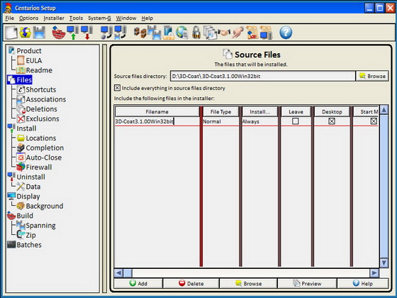 • Files can be added to the installer by dragging and dropping from Windows Explorer. Or simply specify a directory that contains an image of the installation. Or, enter a list of files (wildcards permitted).