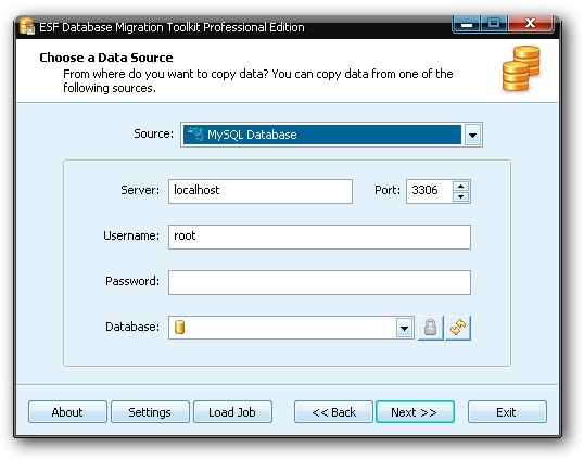 ESF Database Migration Toolkit – программа, позволяющая вам конвертировать различные форматы баз данных. Программа может связываться непосредственно с MySQL, SQL Server, PostgreSQL, Oracle, Access, Excel, Paradox, Lotus, dBase, Visual FoxPro, Text и другими форматами, конвертировать их друг в друга (Сервер SQL для MySQL, MySQL to Access и т.п.). Присутствует простой пошаговый мастер, который поможет вам связаться с целевой базой данных, выбрать таблицы, а затем конвертировать или копировать их в указанное место. Вы можете выбрать включение всех данных или просто скопировать структуру базы данных. Программа обеспечивает все необходимые опции для конвертирования, принимая во внимание все особенности как входящих, так и исходящих форматов баз данных.