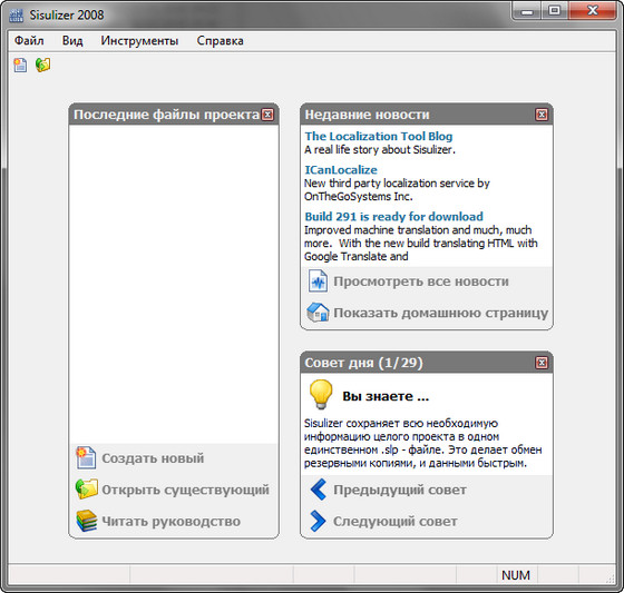 Sisulizer - данная программа предназначена для локализации разнообразного программного обеспечения. Процесс локализации происходит путём сканирования приложения и определения всех участков текста. Поддерживает работу непосредственно в C++ Builder, Delphi, Visual C++, Visual Basic, jаvа, XLIFF. Позволяет визуально работать с HTML и XML, а также отбирать текст из текстовых файлов и баз данных. Программой осуществляется поддержка мобильных приложений: .NET для смарт-устройств, Pocket PC, Windows mobile, Symbian, и J2ME. После сканирования происходит перевод текста с использованием визуального редактора и последующее сохранение проекта с локализацией. После установки программы вы сможете сразу же начать переводить ваши любимые, но не локализованные программы - от вас только требуется знание языков. В данной программе имеется функция автоперевода текста, однако данная возможность будет удобна только при переводе небольших словосочетаний. Программа имеет интуитивно-понятный и многоязычный интерфейс, с поддержкой большого количества языков, включая русский.