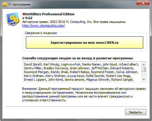 Скачать программу WinUtilities Pro 9.62 Rus (7,56 МБ):