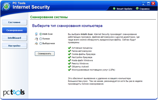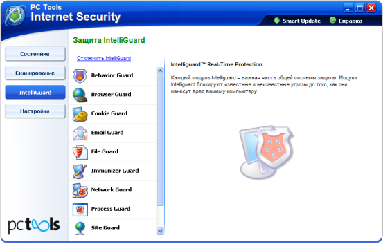 PC Tools Internet Security обеспечивает защиту как от программ-шпионов, так и от вирусов. Постоянно совершенствуется механизм обновлений, который в настоящее время превосходит все известные аналоги. По мере того, как способы сокрытия вредоносных программ становятся все изощреннее, развиваются технологии, используемые PC Tools Internet Security, что позволяет программе все время идти на шаг впереди злоумышленников.