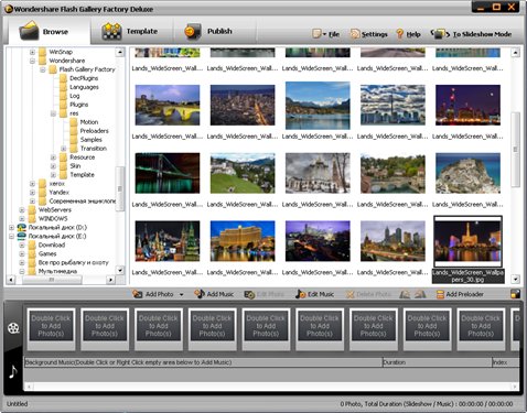 Wondershare Flash Gallery Factory - очень мощная и в тоже время простая в пользовании программа для создания Flash галереи. Wondershare Flash Gallery Factory включает в себя большой набор шаблонов, которые позволяют делать разнообразные презентации снимков, как для web дизайна, так и обычные flash слайд шоу. Цифровой фотоальбом, 3D flash галерея, web галерея, flash слайд шоу, а также flash баннеры, можно создать в Wondershare Flash Gallery Factory без навыков программирования.