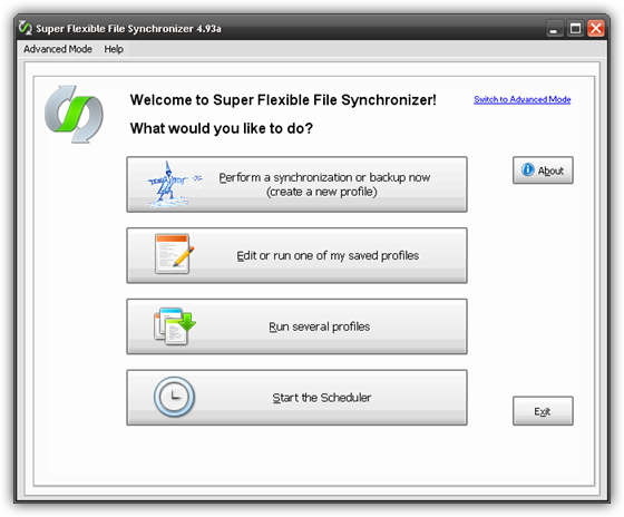 Super Flexible File Synchronizer - мощное приложение для синхронизации и резервного копирования файлов. Поддерживает синхронизацию с серверами по FTP - протоколу, работает с zip архивами, поддерживает кодирование данных, есть встроенный планировщик. На Windows NT / 2000/XP, планировщик может запускаться как служба - без необходимости входа в систему. Приложение позволяет сохранять параметры настройки во множественных профилях, позволяет задавать фильтры и маски для определения точных условий синхронизации. Smart функция позволяет временно пропустить файл, запущенный каким-то приложением, чтобы приступить к синхронизации позднее. Минимальная нагрузка CPU.