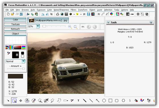 Focus Photoeditor - мощный и легкий в использовании редактор изображений, который вы сможете использовать для обработки и коррекции цифровых фотографий, а также для создания графики для ваших веб-сайтов, дома и офиса. Вы сможете получать фотографии с жесткого диска, другого приложения, а также с помощью сканера или фотокамеры и начинать их немедленную обработку в данном редакторе. В программе имеются функции для автоматического преобразования фотографий за один клик, благодаря чему вы сможете улучшить ваши фотографии за считанные секунды. Также вы сможете самостоятельно отредактировать внешний вид изображений при помощи встроенных в программу инструментов. Focus Photoeditor является неплохим выбором для новичка и для профессионального фотографа, т.к. в нем сочетаются множество качественных функций легких в использовании и настройке.