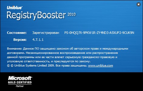 Скачать программу Uniblue RegistryBooster 2010 4.7.1.1 (5,05 МБ):