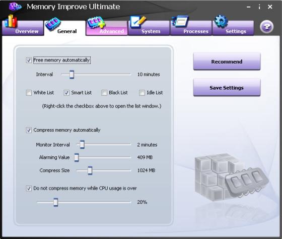 Утилита, которая позволяет увеличить быстродействие вашей системы за счет освобождения оперативной памяти. Имеется возможность установки минимального размера свободной оперативной памяти, при превышении которого запустится модуль и попытается удалить из оперативной памяти лишние процессы. Кроме этого, имеется возможность просмотра запущенных процессов, наблюдение за нагрузкой на ЦП и множество других полезных настроек.