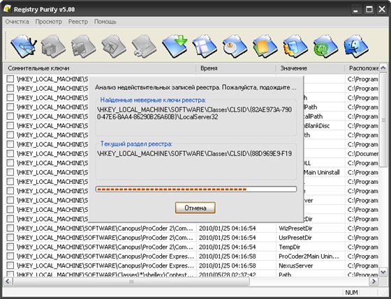 Registry Purify - программа для анализа и очистки недействительных записей в реестре Windows, резервного копирования и восстановления всего реестра в файл системного уровня, для повышения эффективности работы Вашей ОС. Программа использует надежные алгоритмы для анализа и сканирования реестра вашей системы на наличие недействительных записей и выдаст вам список всех найденных ошибок реестра, вы можете выборочно удалить каждый элемент или автоматически исправить все ошибки.