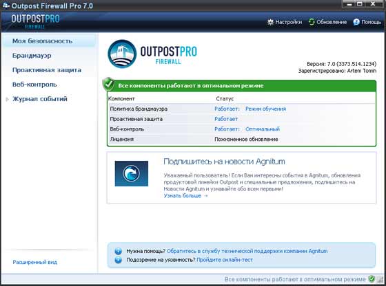 Скачать программу Outpost Firewall Pro 7.0 (3373.514.1234) 64-bit (36.69 МБ):
