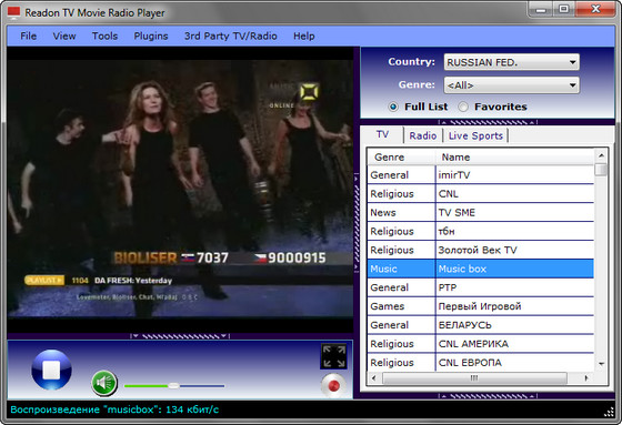 Readon TV Movie Radio Player представляет собой программу, с помощью которой Вы сможете просматривать тысячи различных каналов Интернет-телевидения и Интернет-радио. Понравившиеся музыкальные композиции можно сохранить в формате mp3. Программа имеет удобный интерфейс: все каналы разбиты по странам (есть несколько десятков на русском языке) и категориям. Readon TV Movie Radio Player- это действительно лучший программный продукт в своей области.
