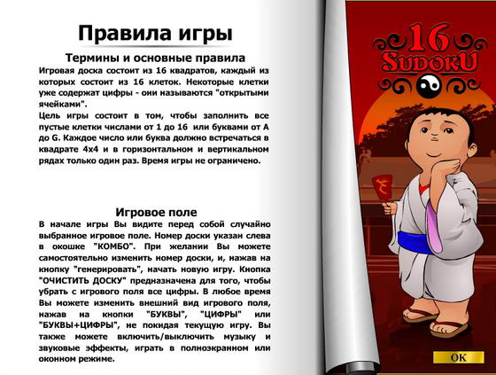 Данный судоку действительно «королевский», так как предлагает три различных варианта: это как классические цифры, так и смешанный вариант «цифры+буквы» и отдельно «буквы». Игра снабжена правилами и имеет гибкие настройки, благодаря чему вы всегда можете настроить желаемое количество открытых символов на доске, а следовательно, и сложность. Красочная графика и «восточное» музыкальное оформление создадут необходимую игровую атмосферу.