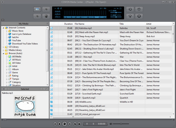 jetAudio - популярный проигрыватель мультимедиа файлов. Программа поддерживает огромное число форматов, среди которых: WAV, MP3, MP3Pro, OGG, WMA, MPG, AVI, WMV, MIDI, RM и другие. При помощи этой программы можно не только слушать и смотреть медиафайлы, а также накладывать звуковые эффекты, изменять скорость просмотра видео, оцифровывать аудио диски, преобразовывать файлы из одного формата в другой и многое другое. Разработкой данной программы занимается компания COWON известная в первую очередь своими аудио-плеерами (материальными). Такой функциональности, как у бесплатной версии плеера jetAudio подчас не бывает и у платных проигрывателей. Кроме всех своих функций, данный плеер обладает очень симпатичным и удобным интерфейсом, а также поддерживает работу с субтитрами и Flash-плеерами.