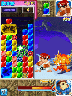 Нечто вроде тетриса для двух игроков, с восьмеркой милых (нарисованных в chibi стиле) персонажей из различных файтингов. В "стакан" падают пары разноцветных кристаллов, которые нужно укладывать быстрее и лучше, чем это делает соперник, а затем разбивать соприкасающееся кристаллы одного цвета соответствующей сферой. Если выстроить из одинаковых кристаллов прямоугольник, они сольются в один большой кристалл, за взрыв которого в стакан противника падают серые кирпичи, мешающие взрывать кристаллы. Особенно удачные комбинации сопровождаются забавной анимацией двух соревнующихся в данный момент персонажей. Размеры экранов: 176x208, 240x320, 360x640.