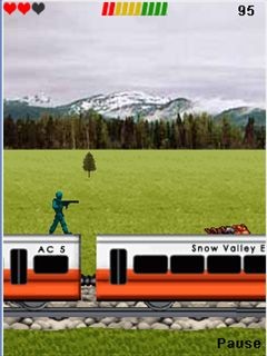 Представьте себя одним из пассажиров поезда, который внезапно захватили террористы. Они требуют огромный выкуп, угрожая уничтожить всех, кто находится в поезде. Злоумышленники прекрасно вооружены. Даже их вертолеты держат движущийся поезд под прицелом. И только один человек способен противостоять такому натиску врагов и может бросить вызов коварным террористам! В The Train Defender нужно защищать поезд от бандитов, бегая по крыше и отстреливая самых разнообразных врагов. Вертолёты, парашюты, пожары, пули и смертельные враги, все настроено, чтобы бросить вызов вам. Размер экрана: 240x320.