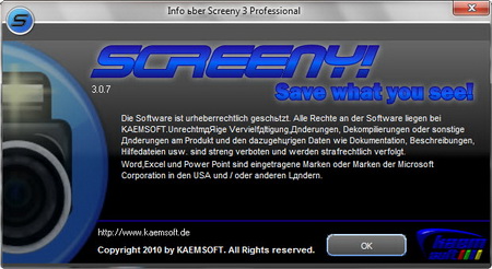 Screeny 3 Professional, the software for individuals, is a very powerful tool for professional desktop screenshots and videos, which you can hold everything from your screen as an image or video. Screeny 3 is the screenshot program for professional screen shots, even from DirectX games, with innovative and comprehensive recording and transmission facilities. Send your recording directly from Screeny by e-mail to your colleagues, or to an FTP server or save your recording directly from a PDF file with Screeny 3 thats no problem .