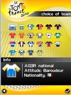 Новый сезон самых известных велогонок в мире на вашем мобильном! Выберите команду, велогонщика, и вперед к триумфам в новом сезоне самых известных велогонок в мире. Размеры экранов: 176x208, 176x220, 240x320, 320x240, 360x640.