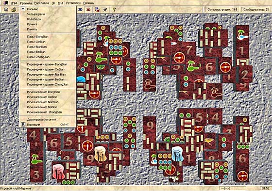 Компьютерная реализация классической древней восточной настольной игры, популярной по всему миру. Вашему вниманию будет представлена 21 вариация 9 типов игр, включая как классические варианты (пасьянс, 4 реки, водопады, кумика), так и новые уникальные варианты (игра по сети, пары, память, исчезновение и другие).