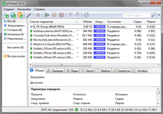 - uTorrent поддерживает параллельные загрузки;