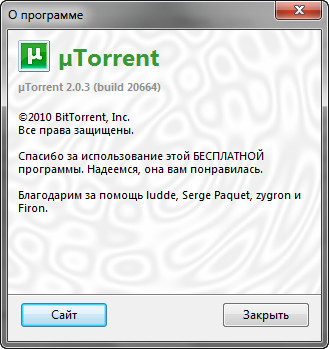 Скачать программу µTorrent 2.0.3 Build 20664 Stable (0,9 МБ):