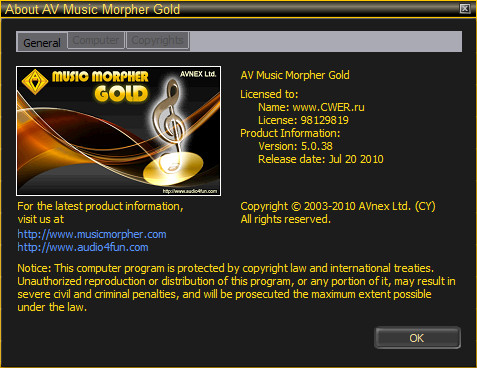 Скачать программу AV Music Morpher Gold 5.0.38 (12,31 МБ):