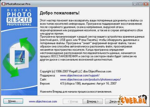 Новые цифровые фотокамеры и флэш-карты позволяют многократно перезаписывать информацию на них. Порой, важная информация может быть случайно стерта. Казалось бы все пропало и время назад не отмотать. И в другом случае вы были бы правы, но... теперь вы знаете о PhotoRescue Pro и можете не волноваться о том, что удаленная по какой-либо причине информация будет навсегда потеряна.