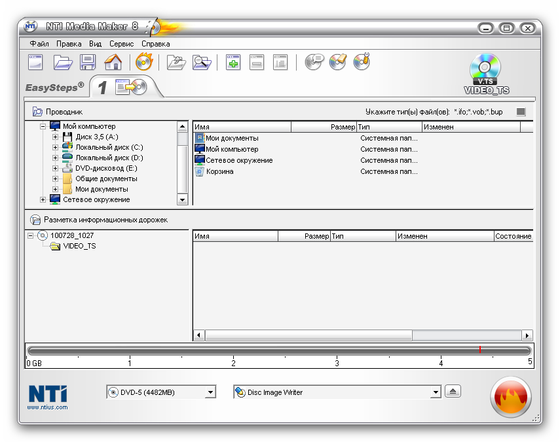 NTI Media Maker - основательный программный комплекс для записи CD и DVD уровня таких программ, как Nero и Easy Media Creator. Помимо записи дисков разных типов в пакете содержатся возможности для захвата видео и аудио с разных источников, инструменты редактирования видео и аудио с возможностью добавления эффектов, видео-плеер с поддержкой AVI, MPEG-1 и MPEG-2, виртуальный CD-ROM, утилита создания обложек для дисков, мощный конвертор, работа с Blu-Ray видео и т.д.