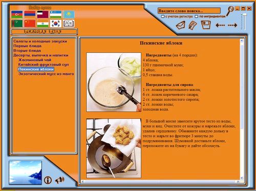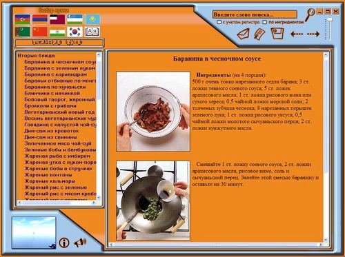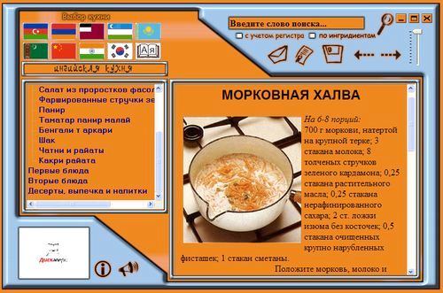Совершенный поисковый механизм дает возможность получить при вводе перечня имеющихся продуктов список рецептов блюд: сначала все блюда, в которые входят эти продукты, а затем блюда, в которые данные продукты входят частично.
