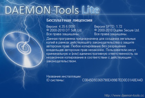 Daemon Tools - эмулятор СD-ROM с поддержкой многих систем защиты. Поддерживает множество форматов образов CD. Программа позволяет осуществлять эмуляцию как обычных дисков, так и дисков с защитой типа BACKUPcopies (SafeDisc), Securom и Laserlock. Небольшая и удобная программа для работы с образами компакт-дисков в различных форматах, включая ISO, CCD (CloneCD), BWT (Blindwrite), NRG (Nero и другие. При запуске игр с помощью образа их диска позволяет эмулировать условия для обхода многочисленных схем защиты от копирования. DAEMON Tools можно использовать как отличный виртуальный CD(DVD)-ROM.