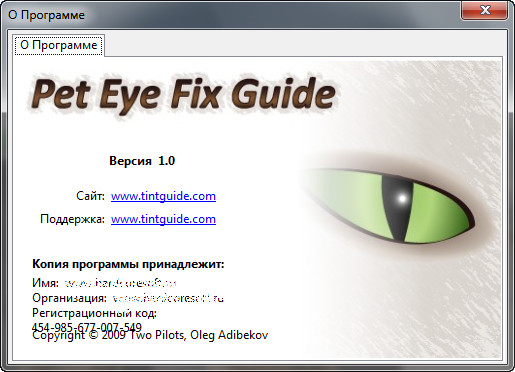 Pet Eye Fix Guide - программа для устранения эффекта засвеченных глаз с фотографий домашних животных и людей. Позволяет восстановить даже полностью испорченные вспышкой глаза. Может справиться с засвеченными глазами любого цвета - красными, желтыми, зелеными, синими и даже полностью белыми. Победит засветку как в зрачке, так и на всем глазу. Программа реализована как самостоятельное приложение и как плагин к различным графическим редакторам.