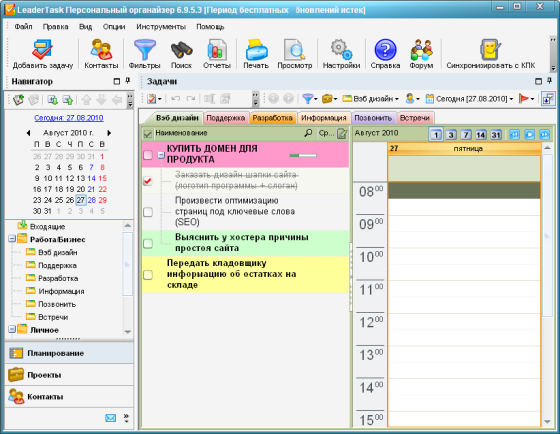 - Ежедневник. LeaderTask - органайзер для планирования повседневных задач, используйте его в роли ежедневника для управления задачами.
