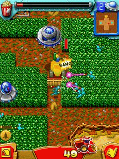 У мерзких инопланетян закончился попкорн и они направляются за пополнением его запасов на Землю. Их цель — урожайные кукурузные поля, принадлежащее ничего не подозревающей деревенской семье. Наивные гуманоиды думали, что фермеры деланы пальцем — не тут-то было. Эта ферма станет для инопланетных захватчиков настоящим адом, а комбайн для уборки кукурузы — натуральным Жнецом Смерти. Соберите богатый урожай пришельцев, скосив их под корень, и расстреливая из разнообразного оружия летающие тарелки. Размеры экранов: 128x160, 176x220, 240x320.