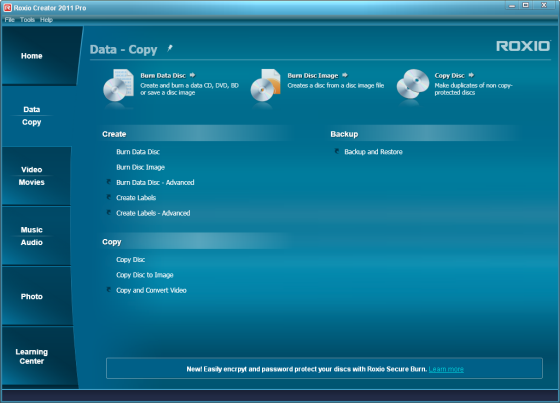 Roxio Creator 2011 Pro представляет собой решение для записи, редактирования и публикации персональных видеоматериалов, включая записи высокой четкости. Приложение обеспечивает запись дисков, резервное копирование данных, преобразование записей с разных носителей в формат MP3, редактирование аудиозаписей, создание меню для DVD, поддержку стандарта Blu-ray и высокую скорость кодирования видеопотока благодаря применению технологий ATI Stream и NVIDIA CUDA.
