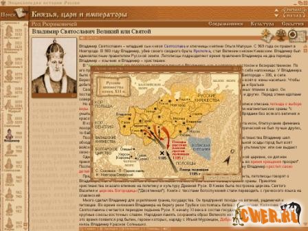В энциклопедию вошли статьи о выдающихся исторических деятелях, русских городах, рассказы о выдающихся произведениях искусства и исторических памятниках – обо всем, что составляет славу и гордость России.
