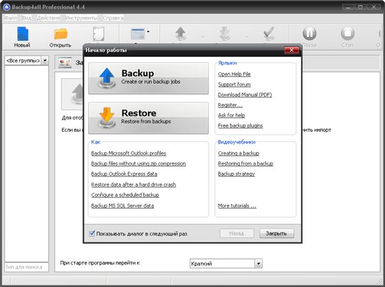 Одно из правил, которого следует придерживаться, чтобы быть уверенным в том, что данные не будут утеряны в результате аппаратного или программного сбоя, держать на CD/DVD или другом носителе резервные копии файлов. Программа Backup4all предназначена для такого резервного копирования данных. Рутинный процесс постоянного резервирования данных можно полностью автоматизировать: установить график процесса создания копий файлов, указать место, где хранятся исходные данные, применить инкрементальное копирование и т.д. Чтобы обезопасить резервные данные, можно использовать функцию сжатия в формат zip, с использованием стойкого алгоритма шифрования с длиной ключа 128, 192 и 256 бит.