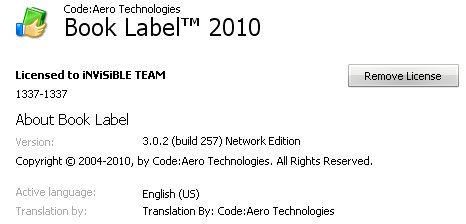 Book Label - программа от компании Codeaero, предназначенная для удобной организации больших собраний электронных книг. Программа автоматически находит информацию о той или иной книге в интернете и записывает ее на жесткий диск, позволяет выполнять сортировку и поиск по базе данных, отмечать книги, которые пользователь дал почитать друзьям (чтобы их не потерять), выполнять печать книжного каталога на принтере, создавать и работать с несколькими базами данных одновременно. Кроме того, программа позволяет настраивать внешний вид, выполнять экспорт книжного каталога в текстовом формате или HTML и вести статистику.