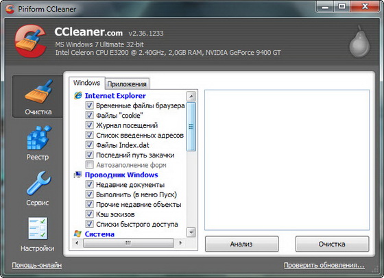 Скачать программу CCleaner 2.36.1233 (3,27 МБ):