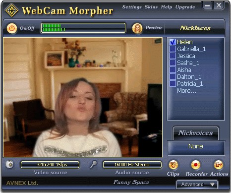 AV Webcam Morpher - программа, которая позволит вам искажать видео и аудиопотоки с вашей вебкамеры. Вам даже не нужно иметь вебкамеру для работы с этим приложением; программа симулирует работу вебкамеры с помощью различных подставных лиц.