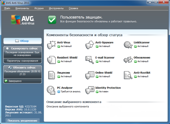 Скачать программу AVG Anti-Virus Professional Edition 2011 v10.0.1120 x86 (135,26 МБ):