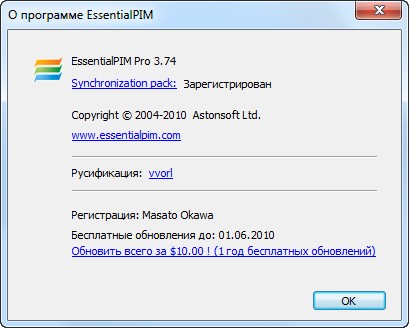 Скачать программу EssentialPIM Pro 3.74 (7,70 МБ):