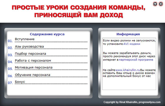 Скачать видеокурс "Простые уроки создания команды, приносящей вам доход" (3,93 ГБ):