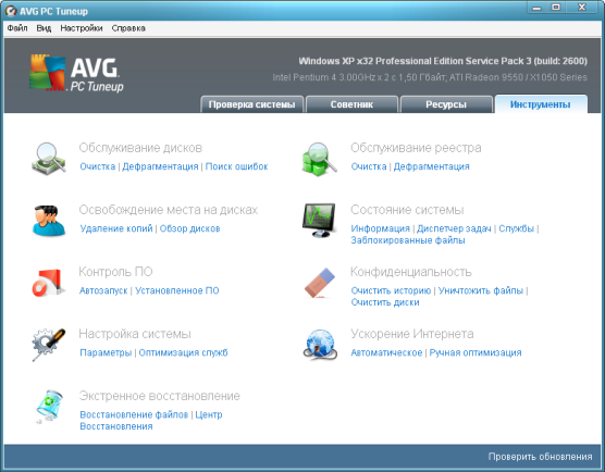 AVG PC Tuneup 2011 - идеальное решение проблемы оптимизации Вашего компьютера. Это мощное средство по настройке Вашей системы наиболее оптимальным способом, очистке Вашего реестра и диска, а также оптимизации Ваших программ. Программа содержит набор из более чем 18-ти утилит, способных очистить, ускорить и решить проблемы Вашего компьютера.