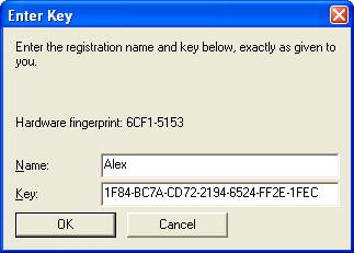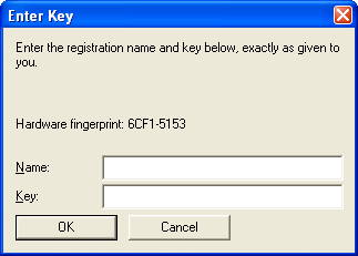 Откроется окно для ввода имени и регистрационного ключа. Скопируйте код напротив Hardware fingerprint: