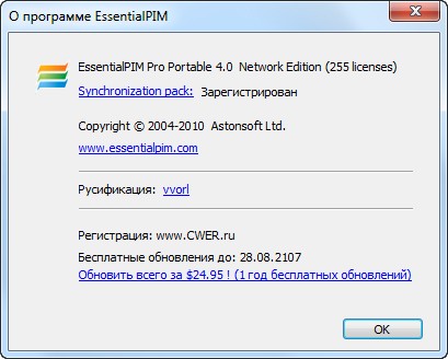 Скачать программу Portable EssentialPIM Pro 4.0 Network Edition (12,82 МБ):