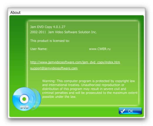Скачать программу Jam DVD Copy 4.0.1.27 (34,07 МБ):