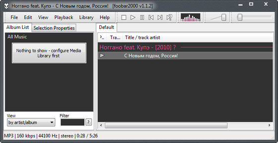 foobar2000 - аудиоплеер, основные черты которого качественный звук, широкие возможности настройки, спартанский интерфейс и низкие системные требования. Foobar проигрывает файлы форматов MP1, MP2, MP3, MP4, MPC, AAC, Ogg Vorbis, FLAC / Ogg FLAC, WavPack, WAV, AIFF, AU, SND, CDDA, WMA (lheubt форматы могут поддерживаться при установке соответствующих плагинов). Имеется полная поддержка unicode. В программе использован новый формат плейлистов (m3u8) и поддерживается чтение APEv2-тэгов из файлов MP3 (id3v2 не поддерживается).
