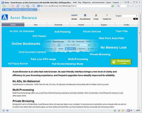 Скачать программу Avant Browser 2010 Build 130 Final (2,5 МБ):