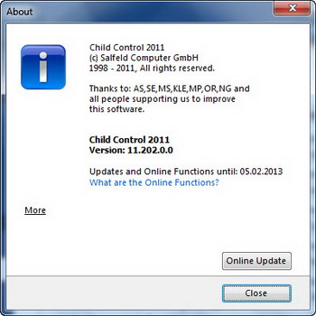 Hacks on the Internet: There are a lot of tips and tricks on how to "crack" Child Control on the Internet meanwhile. We have improved security a lot so that existing hacks won't work anymore. Child Control offers now an integrated auto update to keep security up-to-date.